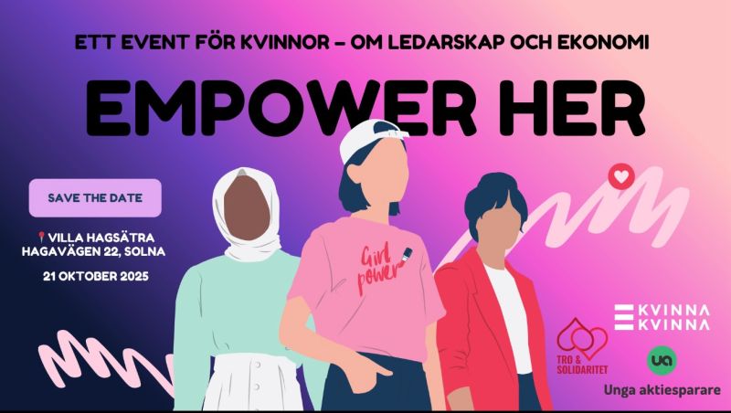 Den 21 oktober ordnar Kvinna till Kvinna tjejeventet eventet ”Empower Her” på Villa Hagsäter Solna, en dag för kvinnor med fokus på ledarskap och ekonomi.
