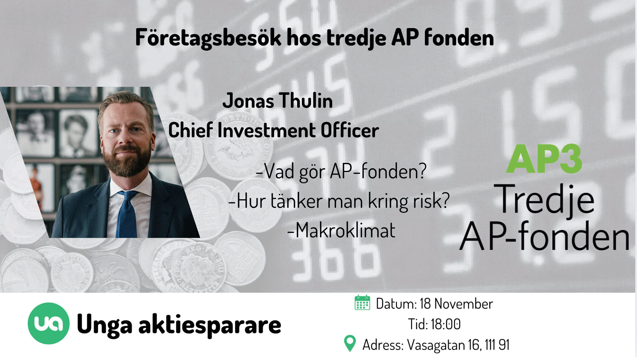 Välkommen till en kväll där vi får besöka Tredje AP-fonden (AP3) och Jonas Thulin som är CIO (Chief Investment Officer)