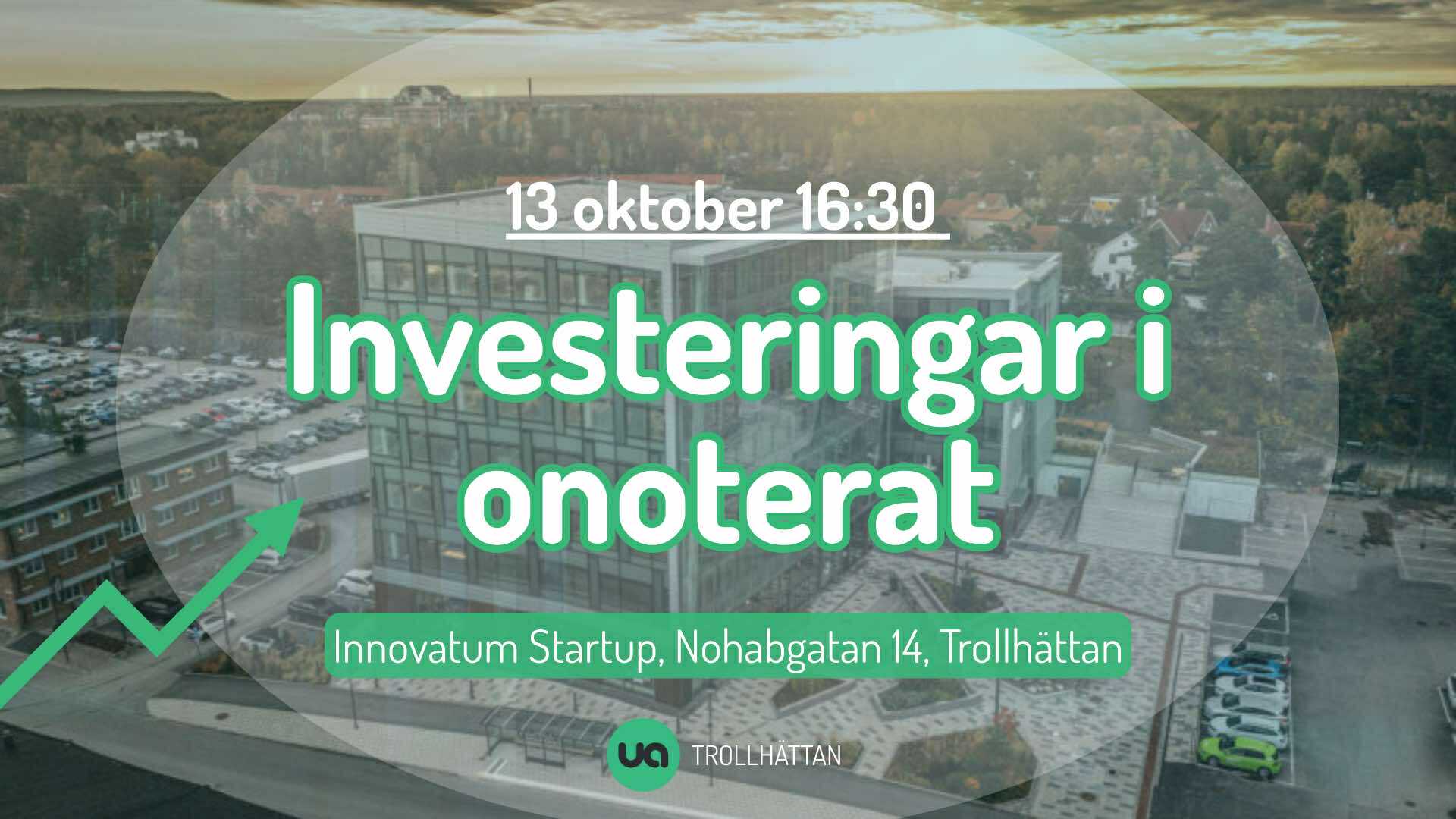 Är du nyfiken på investeringar i onoterade bolag och startups? Den 13 oktober gästas vi av teamet från Innovatum Startup, en inkubator där flera spännande bolag tagit sina första steg – bland annat företag som synts i tv-programmet Draknästet. På plats finns bland annat entreprenören Frida Finnman, som delar med sig av sina erfarenheter och insikter.