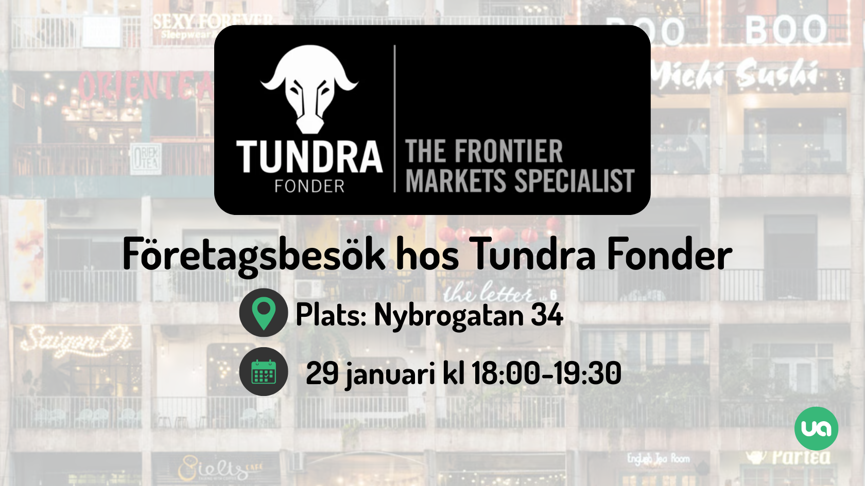 Under eventet kommer du bland annat få höra om Mattias resa i finansbranschen, från sina tidiga år på vaktmästeriet hos Hagströmer & Qviberg, vidare till erfarenheter runt Ryssland, och slutligen som grundare av Tundra Fonder. Du får även insikt i vad teamet arbetar med idag, deras investeringsfilosofi, och vad de tittar på i ansökningsprocesser. Det kommer bjudas på enklare mat, bland annat wraps.